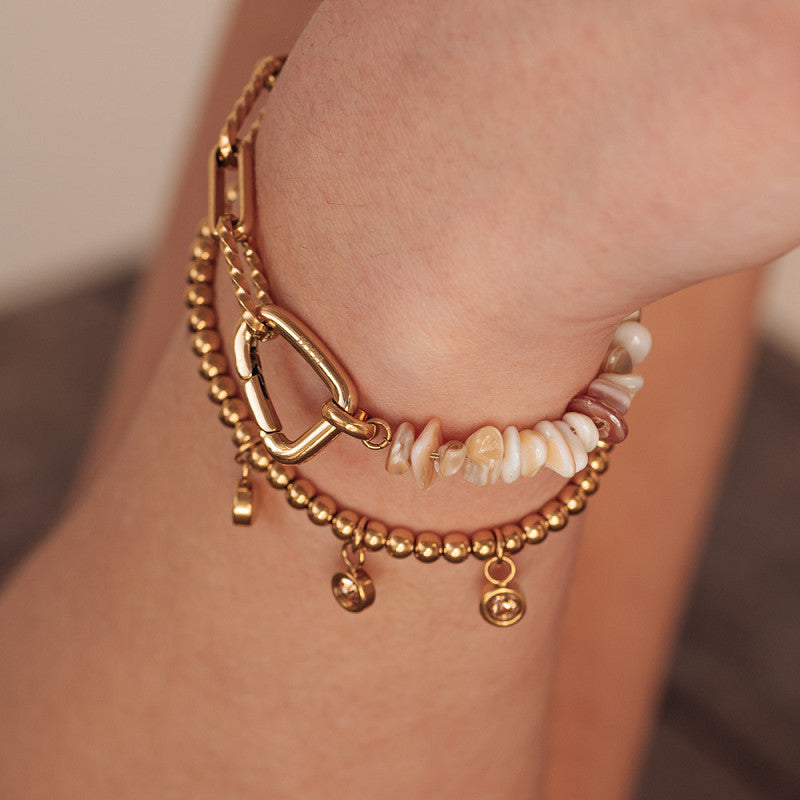 De iXXXi Connect ketting Horizon is een zomerse en elegante ketting geïnspireerd op de zachte kleuren van het strand. Deze ketting bestaat uit steentjes in verschillende formaten in natuurlijke tinten, wat zorgt voor een speels en verfijnd effect. Aan beide uiteinden is de ketting afgewerkt met een duurzame stainless steel schakel, waardoor hij stevig en huidvriendelijk is.